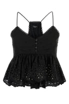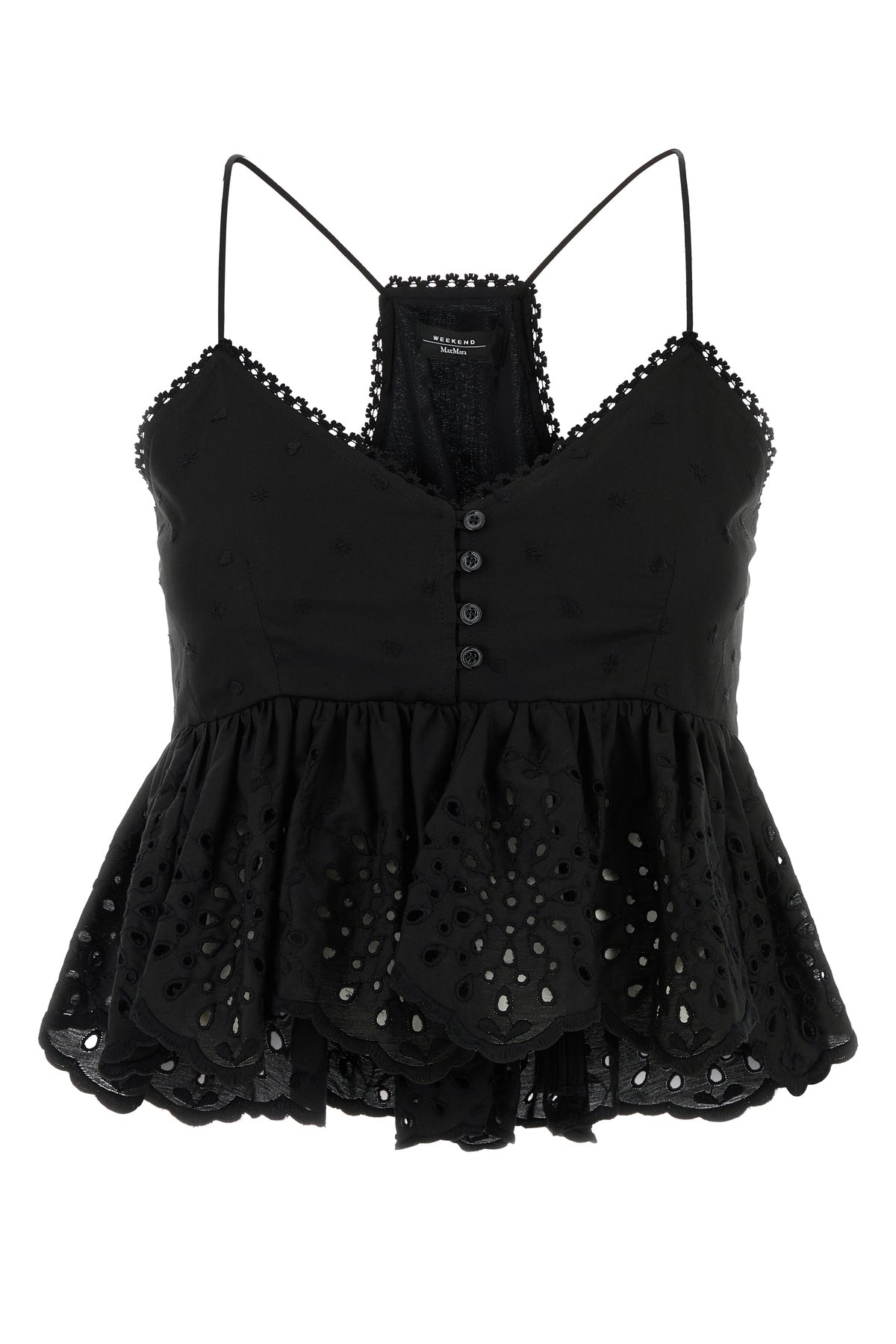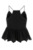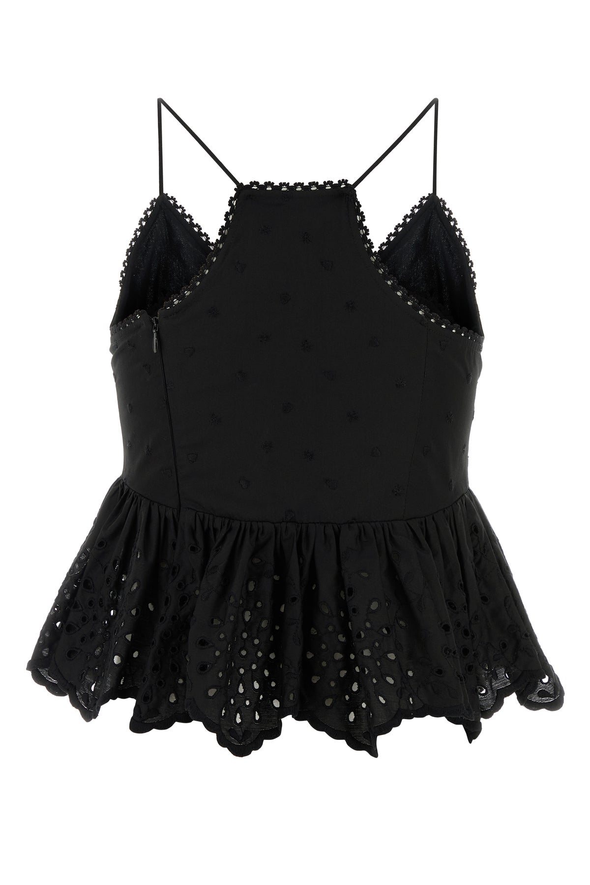 Top realizzato in pizzo sangallo di puro cotone caratterizzato da scollatura a V.