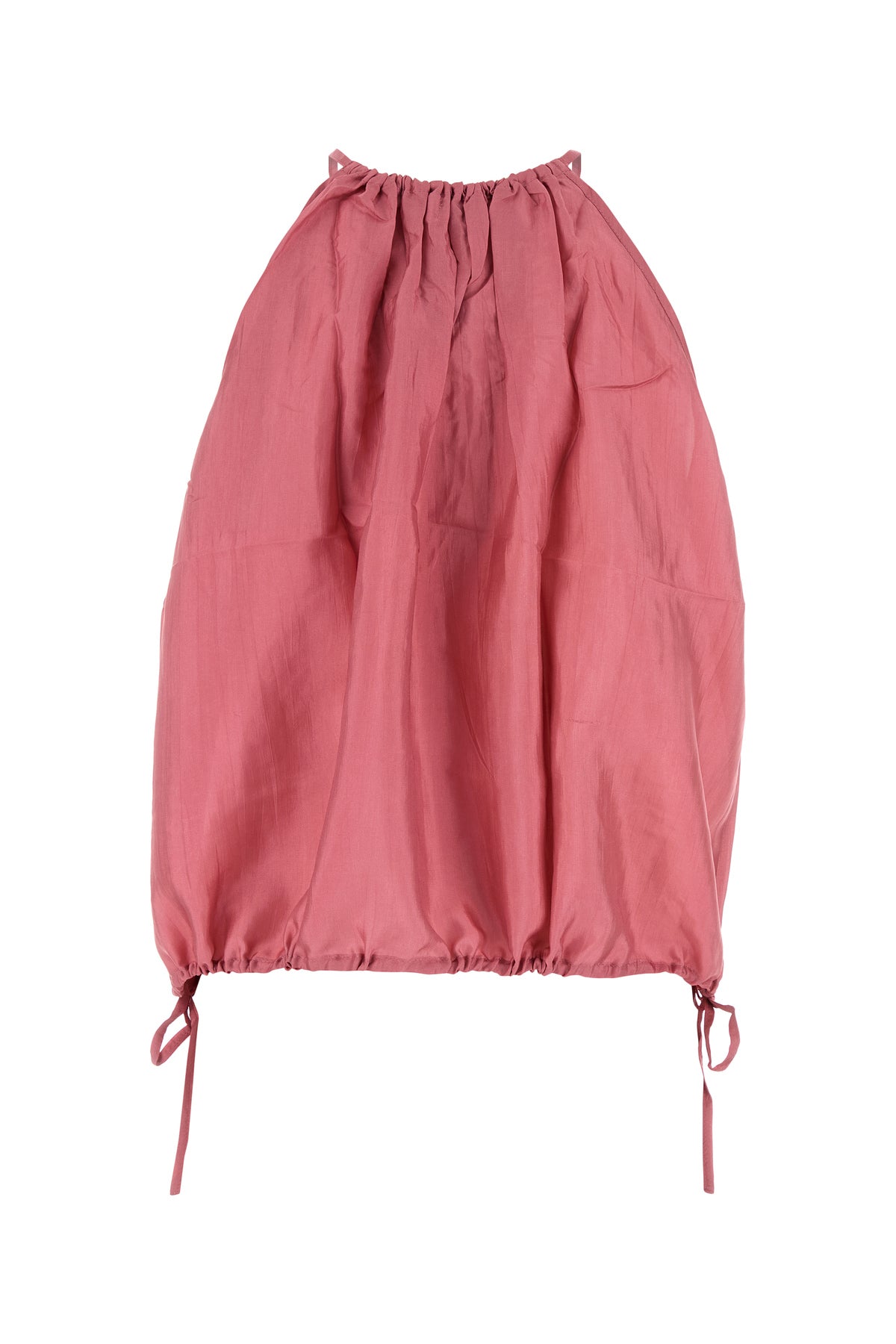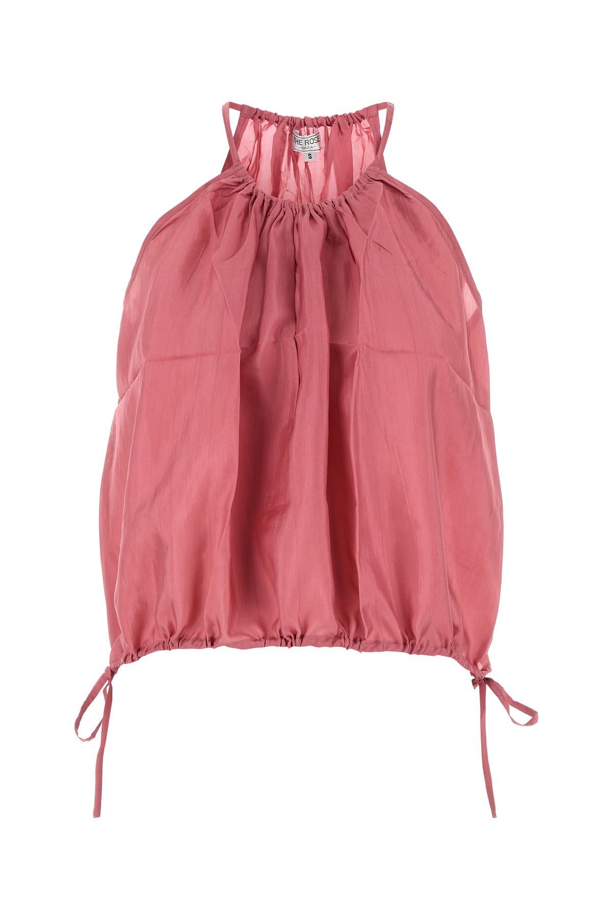 Top realizzato in pura seta caratterizzato da scollatura a giro.