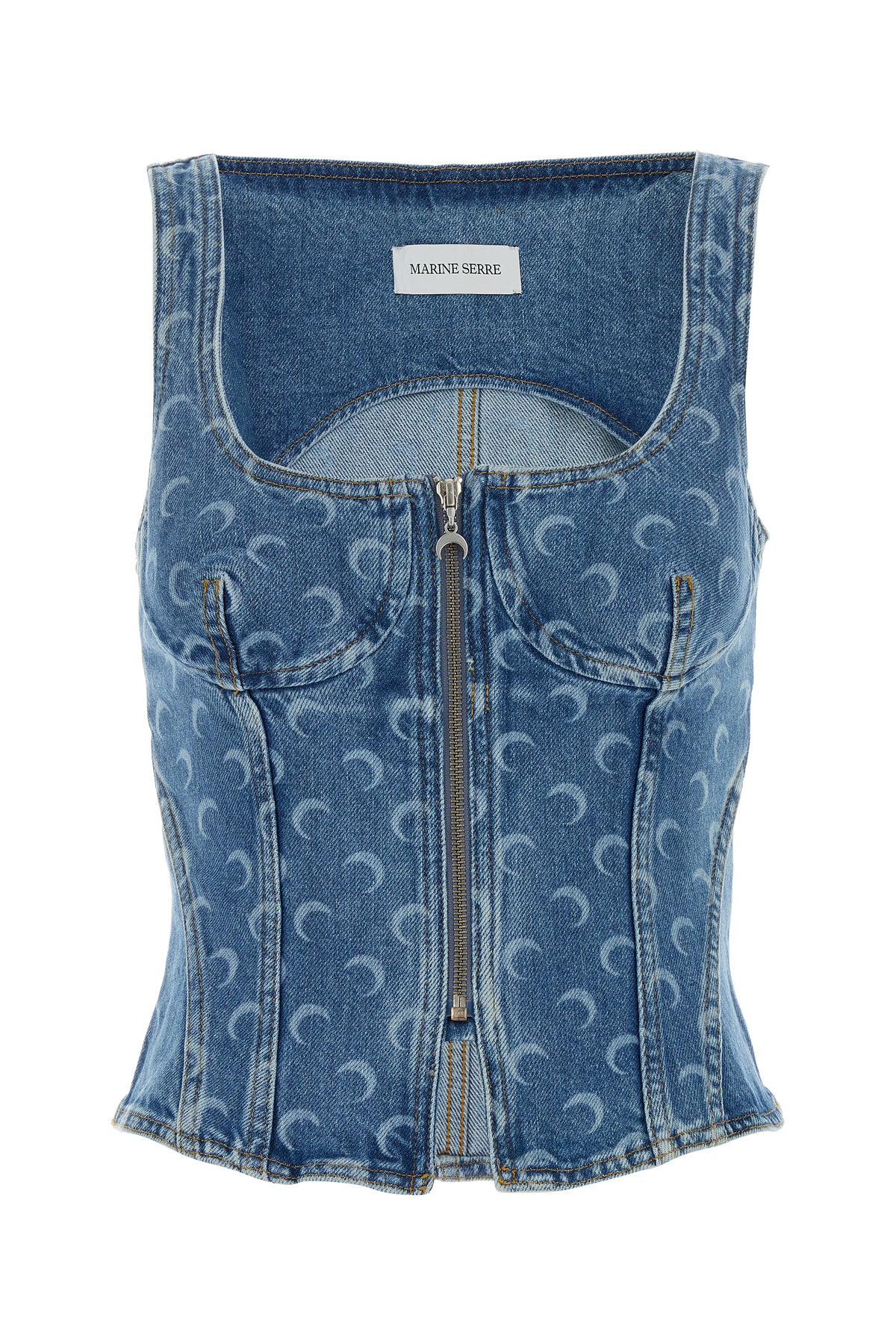 Top realizzato in denim di puro cotone caratterizzato da stampa Moon su tutta la superficie arricchito da etichetta logata sul retro.