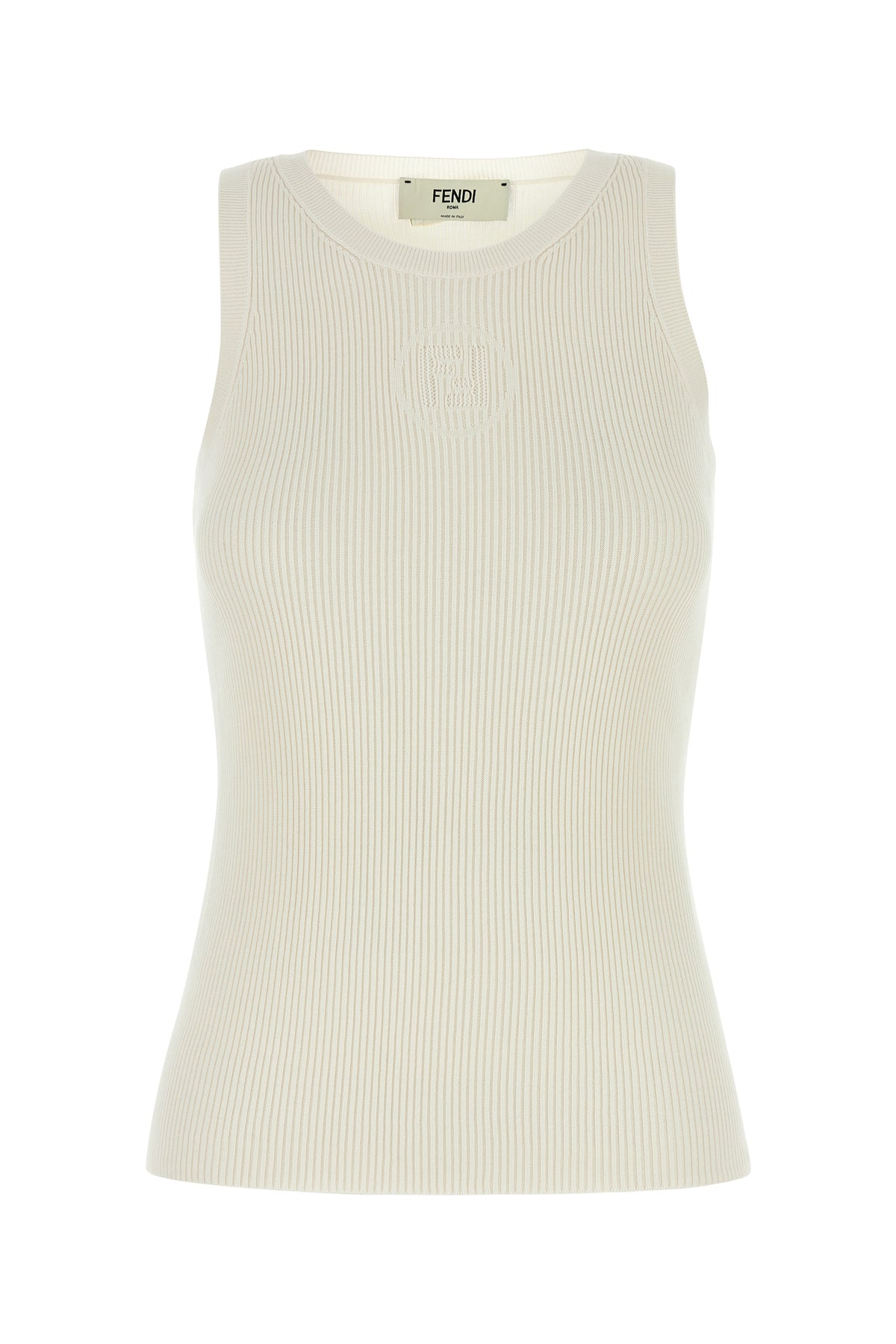 Top realizzato in misto seta a costine caratterizzato da motivo FF traforato sulla parte frontale.