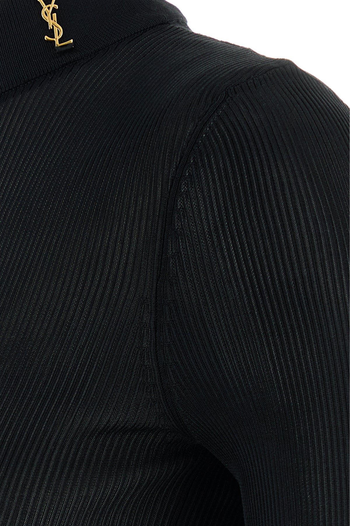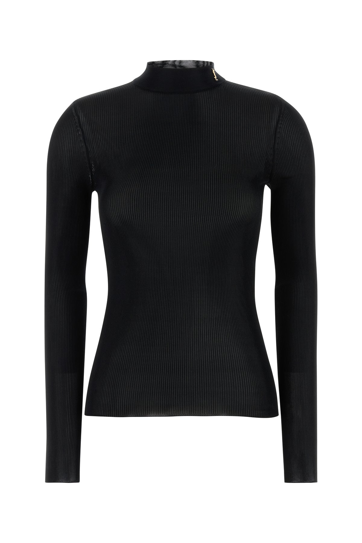 Top realizzato in pura seta arricchito da iconico dettaglio metallico Monogram sul collo a lupetto.