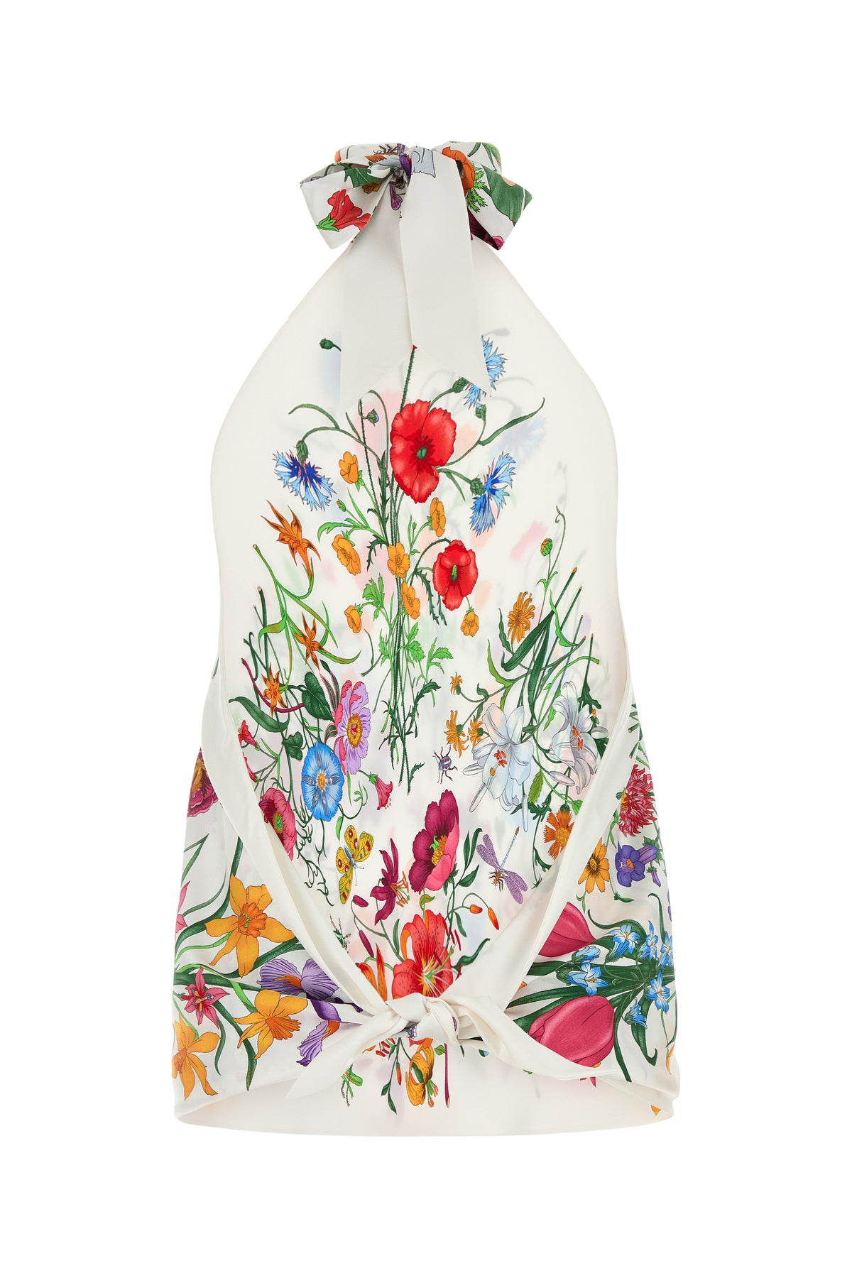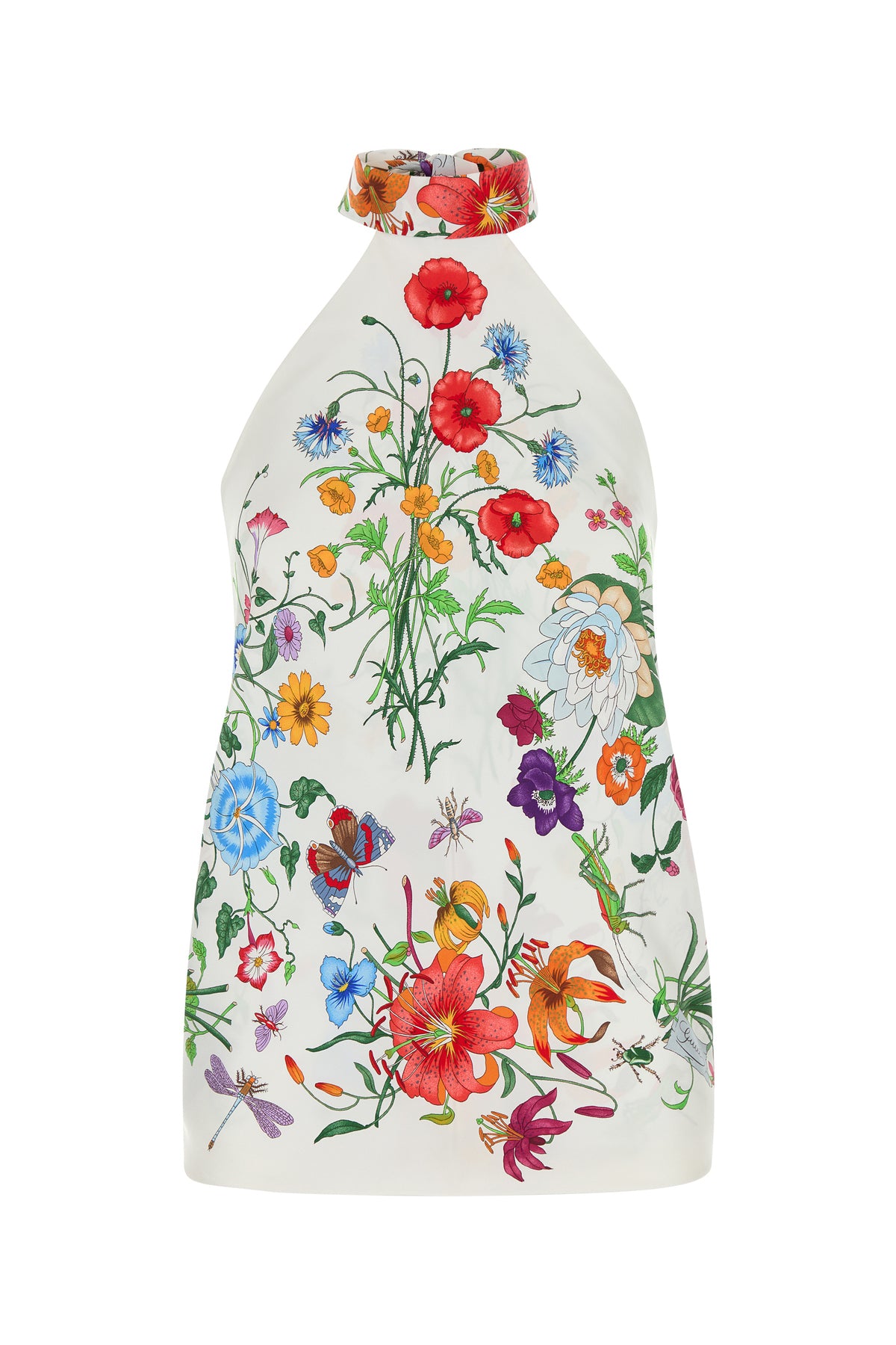 Top realizzato in twill di pura seta caratterizzato da stampa Gucci Flora su tutta la superficie.