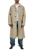 Trench realizzato in misto cotone con inserti a contrasto sui polsini caratterizzato da iconica cucitura a contrasto sul retro.