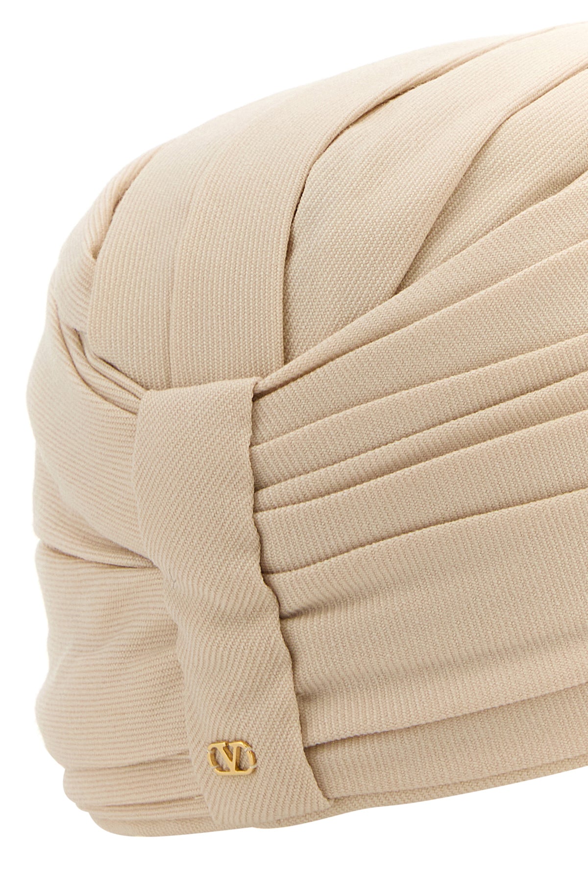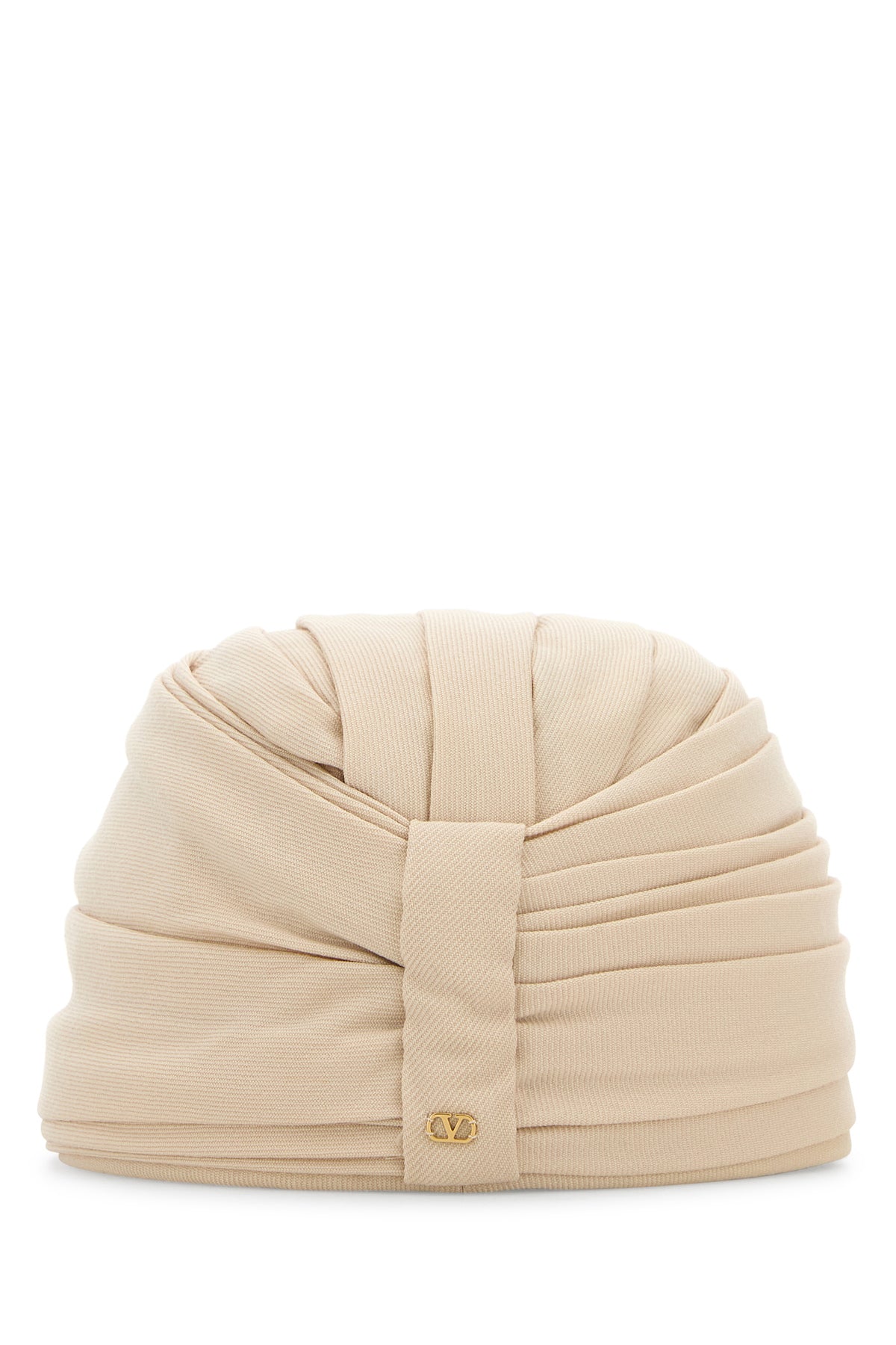 Turbante rigido realizzato in pura lana vergine arricchito da dettaglio metallico VLogo sul retro
