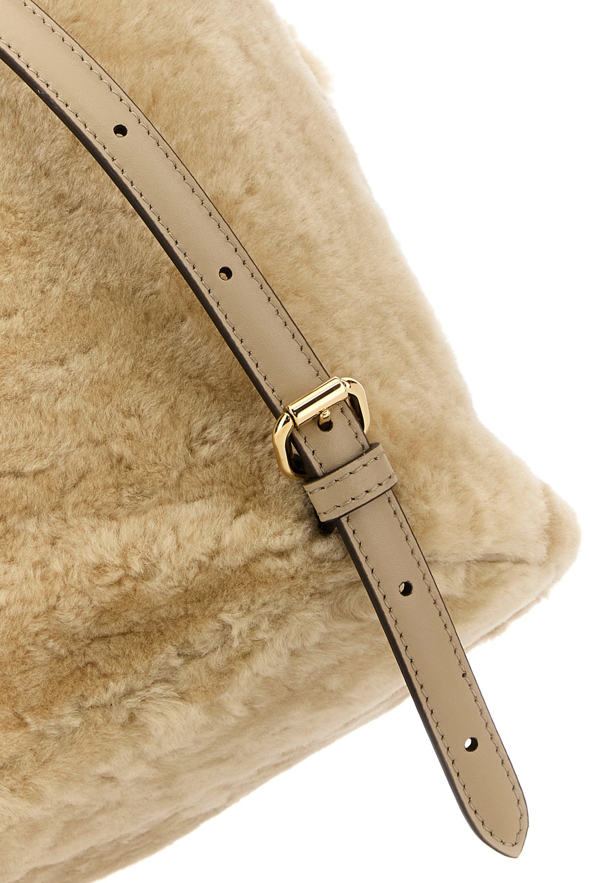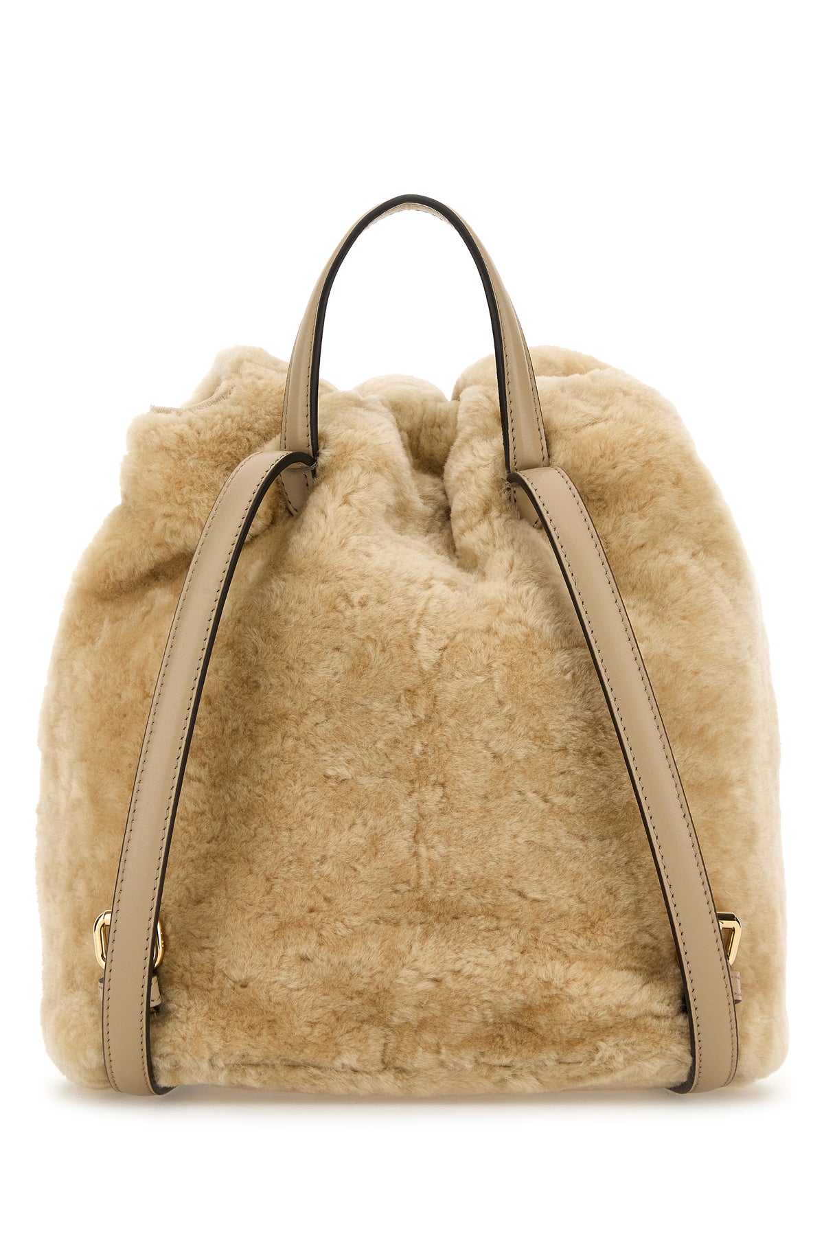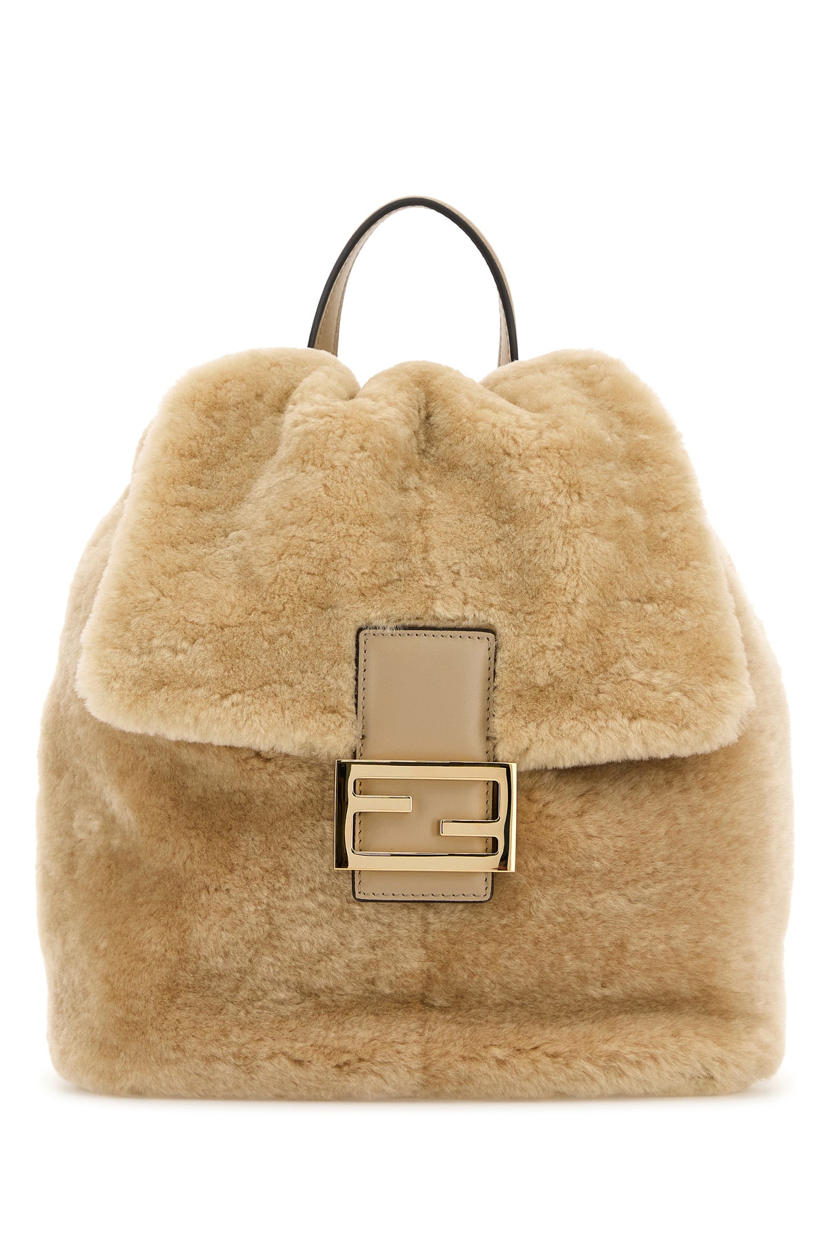 Zaino realizzato in montone arricchito da dettaglio metallico FF sulla parte frontale.