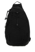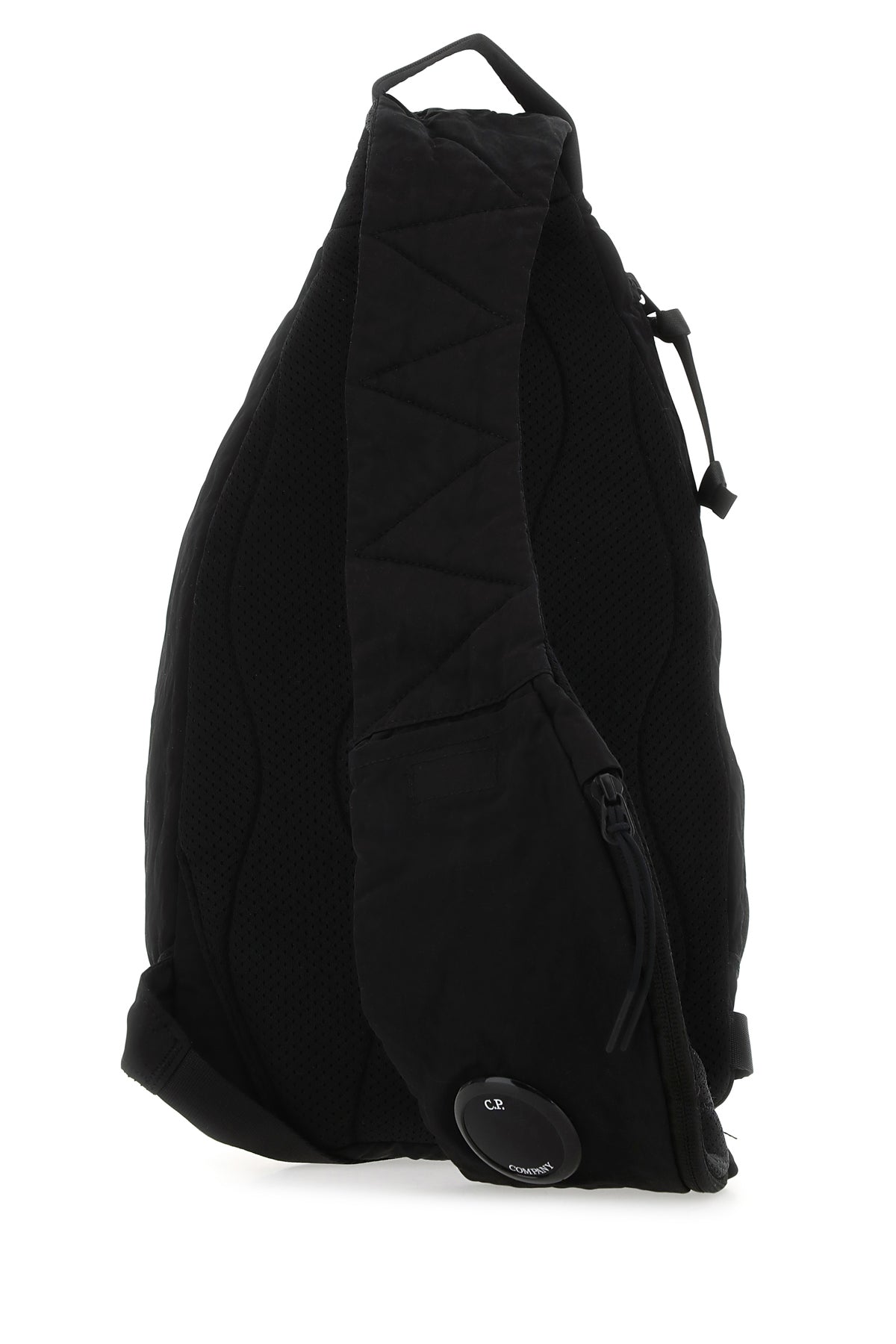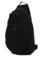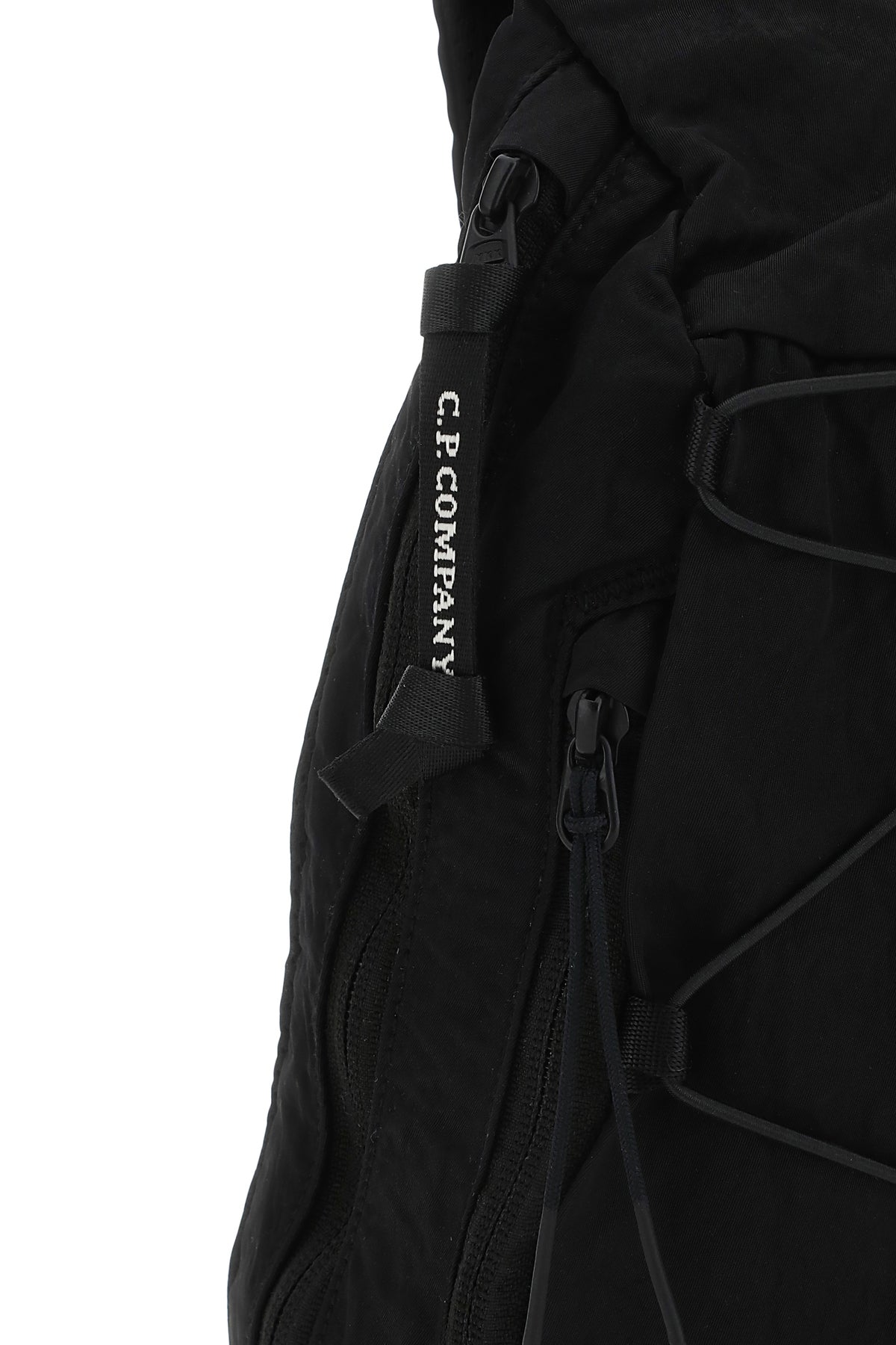 Zaino realizzato in nylon arricchito da applicazione logata tonale sullo spallaccio imbottito.