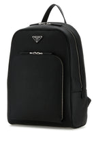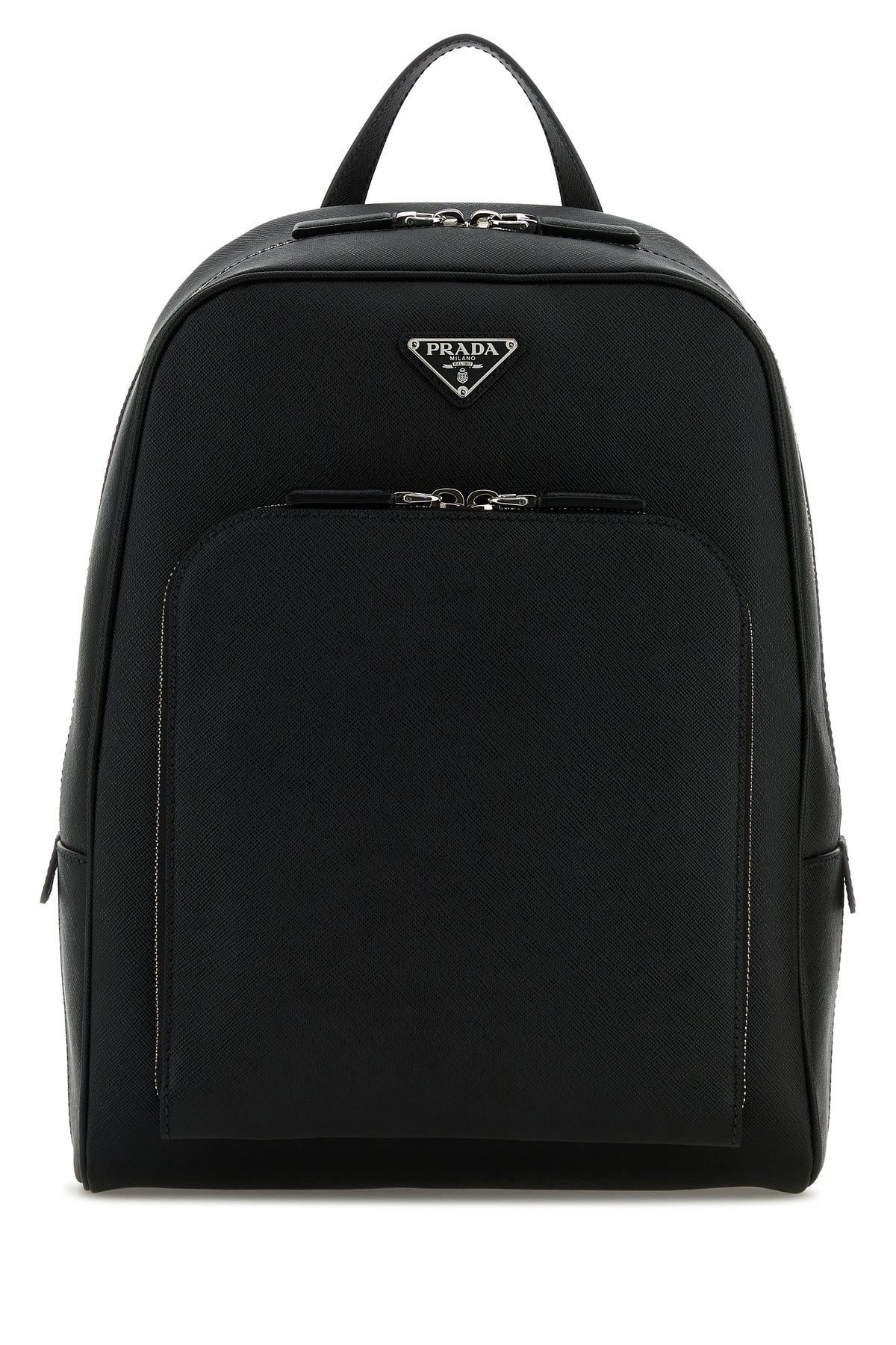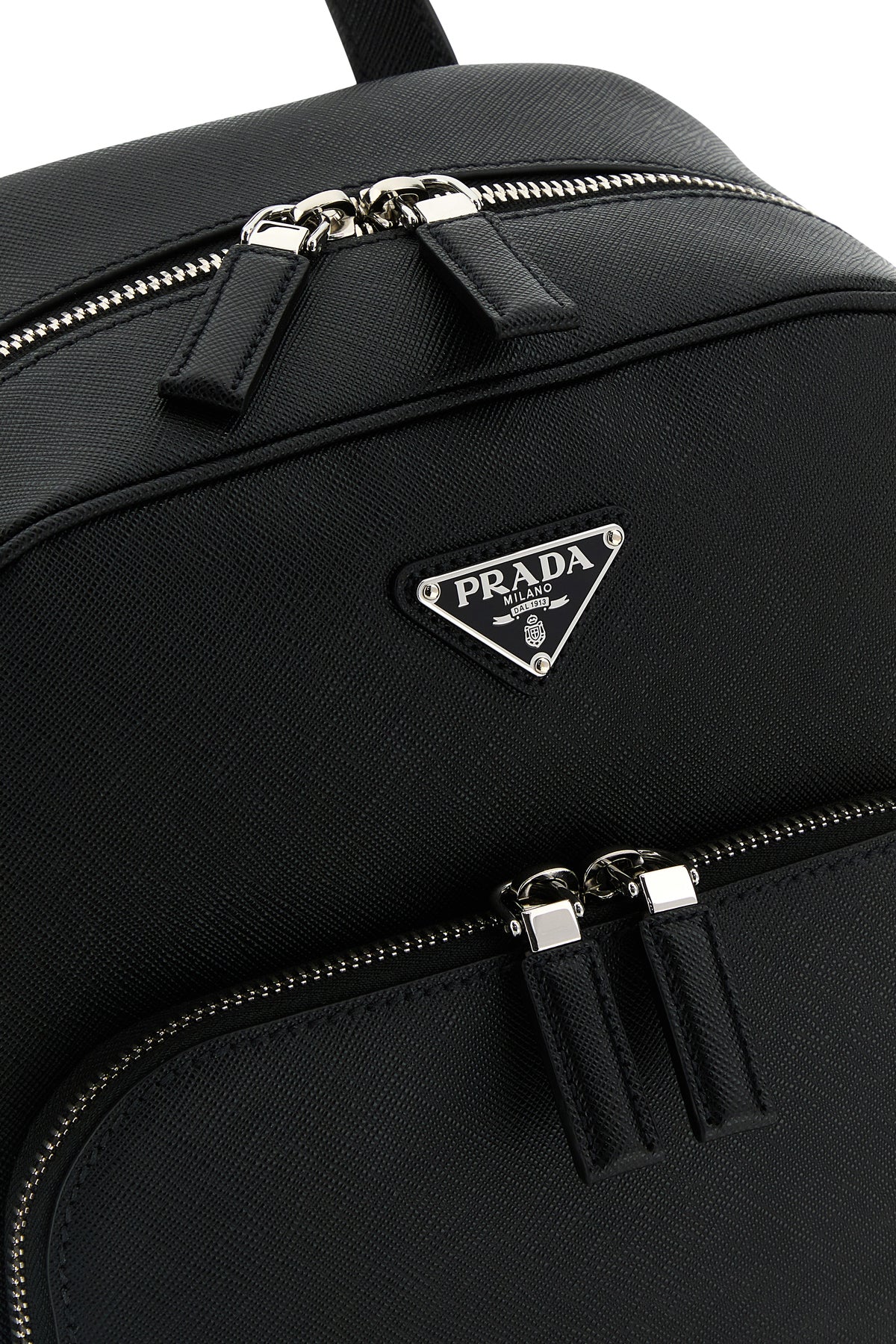 Zaino realizzato in pelle Saffiano arricchito da iconico triangolo metallico logato sulla parte frontale.
